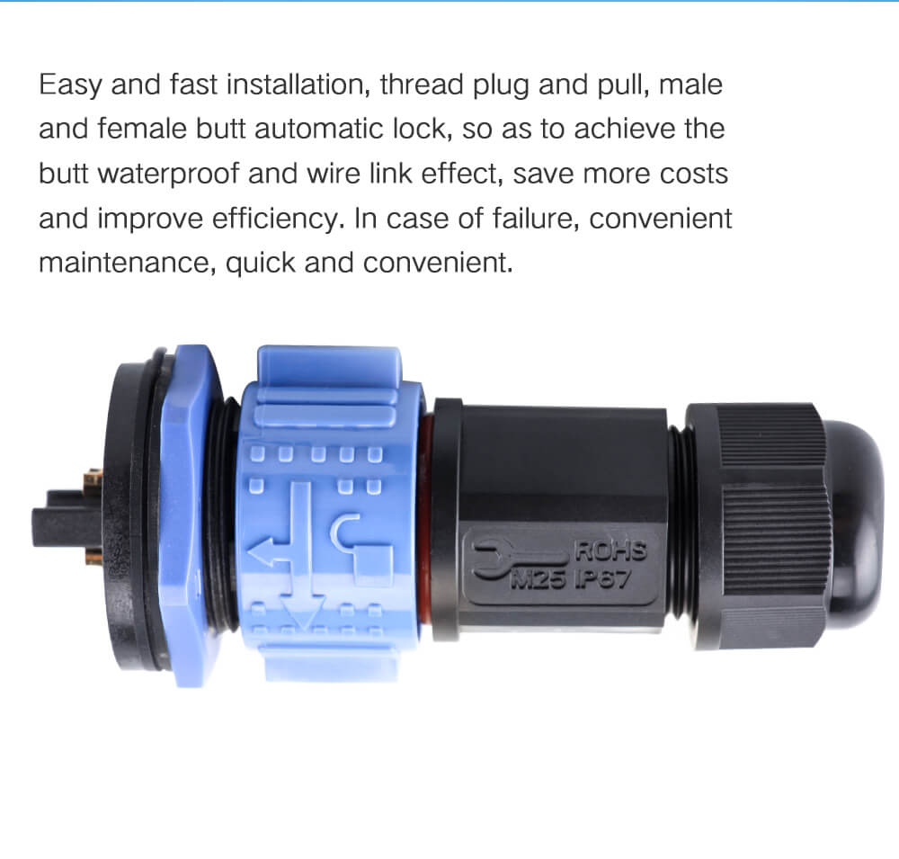 -Easy and fast installation, thread plug and pull, male and female butt automatic lock