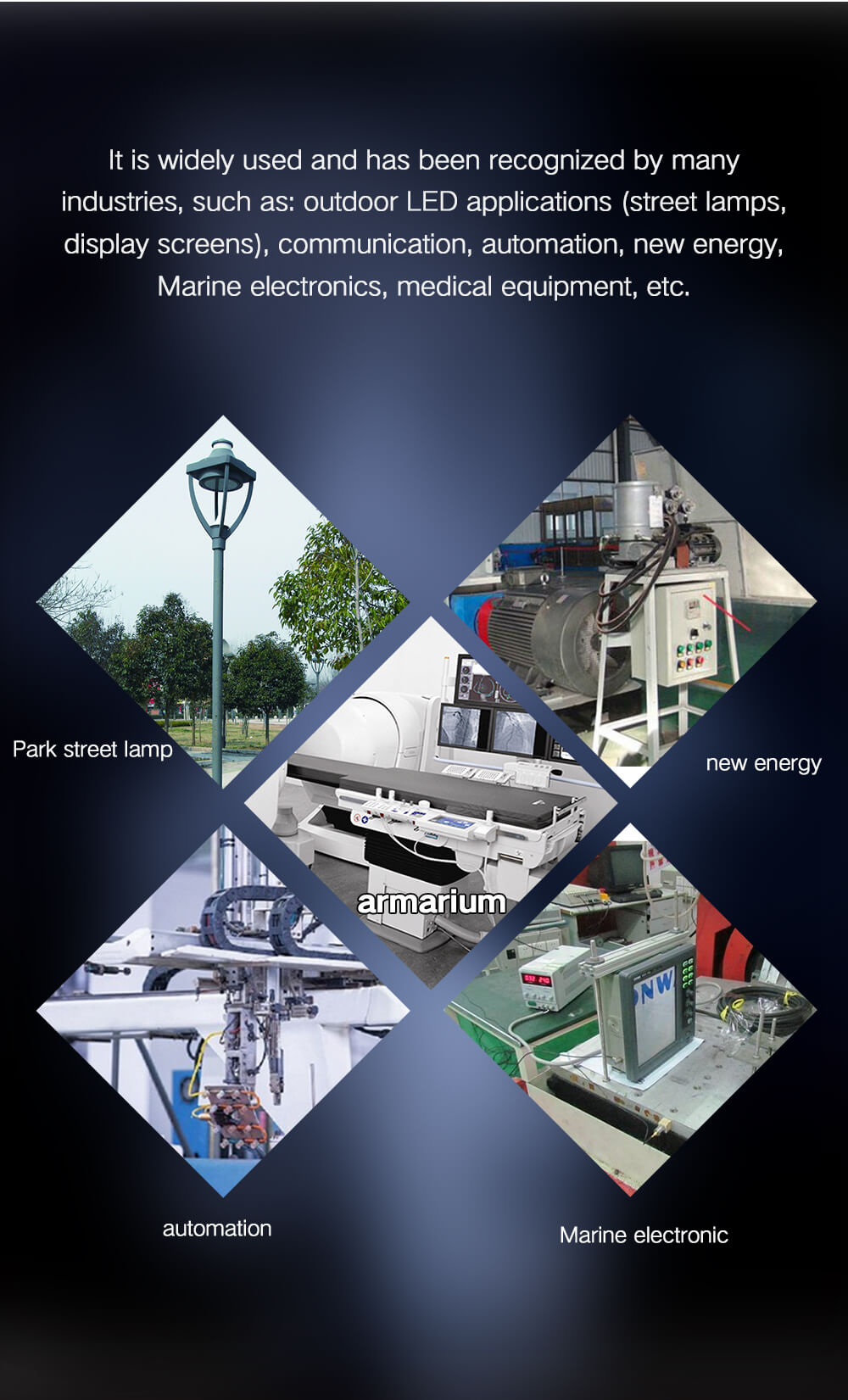 Application: outdoor LED application(street lamps,display screens), communication, Automation,new energy,marine electronics,medical equipment,etc