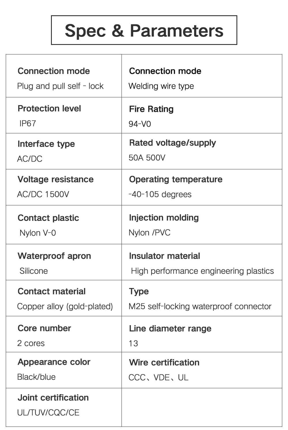 Item name:FIRDUO 50A current plug and unplug self-locking waterproof cable connector